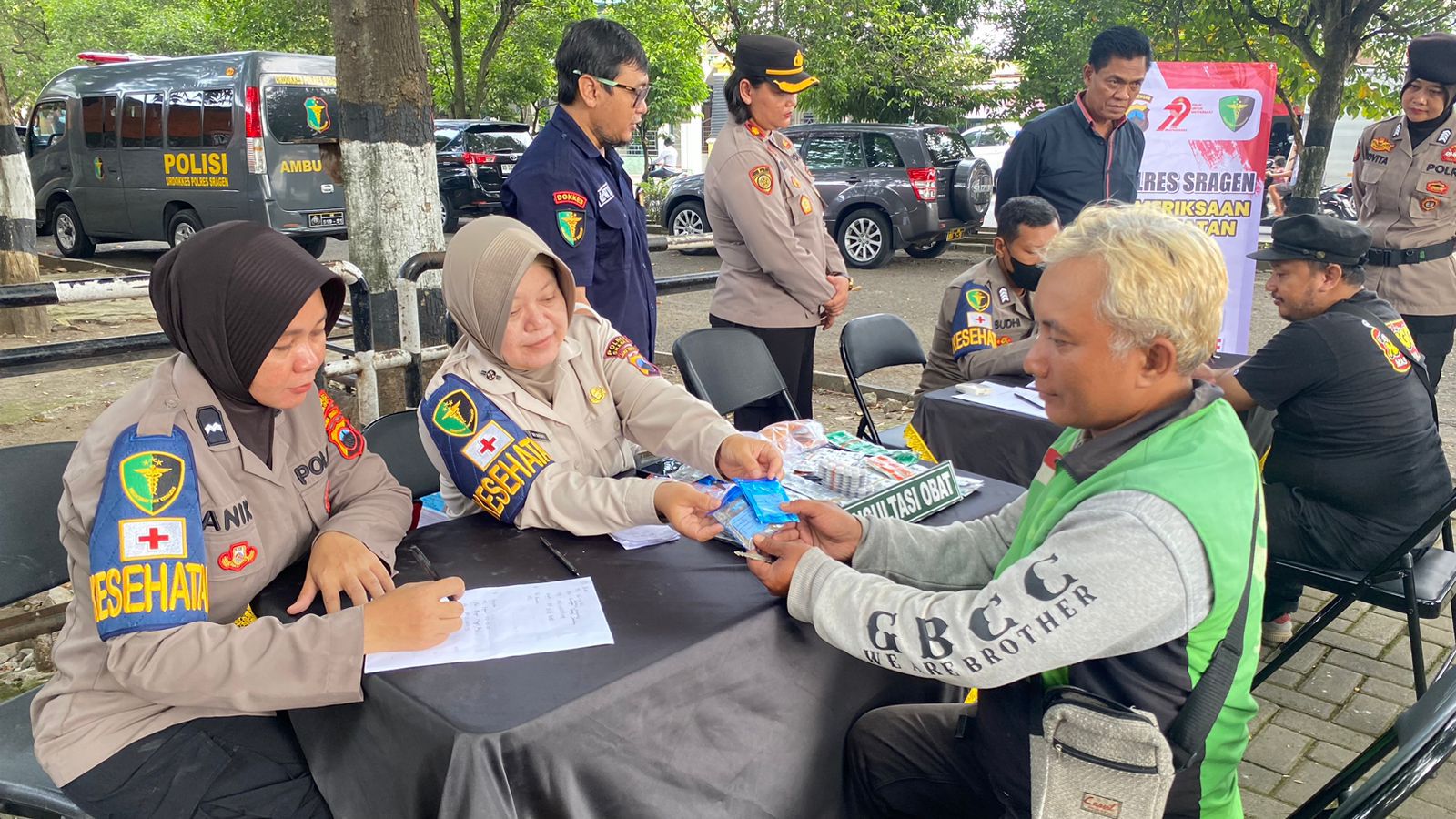 Adapun pemeriksaannya dilakukan secara stasioner di depan kantor Biddokkes Polda Jateng. Selain itu, pelayanan juga berlangsung secara mobile dengan menggunakan ambulans motor yang menyasar langsung para pengemudi ojol di jalanan.