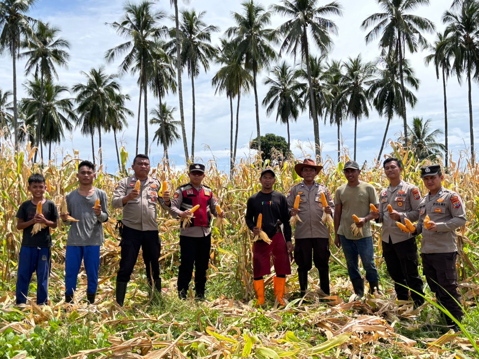 MANADO, Humas Polresta Manado – Polsek Wori turut serta dalam kegiatan proses panen jagung milik Bapak Harun Pinanaung yang berlangsung di Desa Tiwoho Jaga II, Kecamatan Wori, Kabupaten Minahasa Utara, Selasa (17/8/2025).