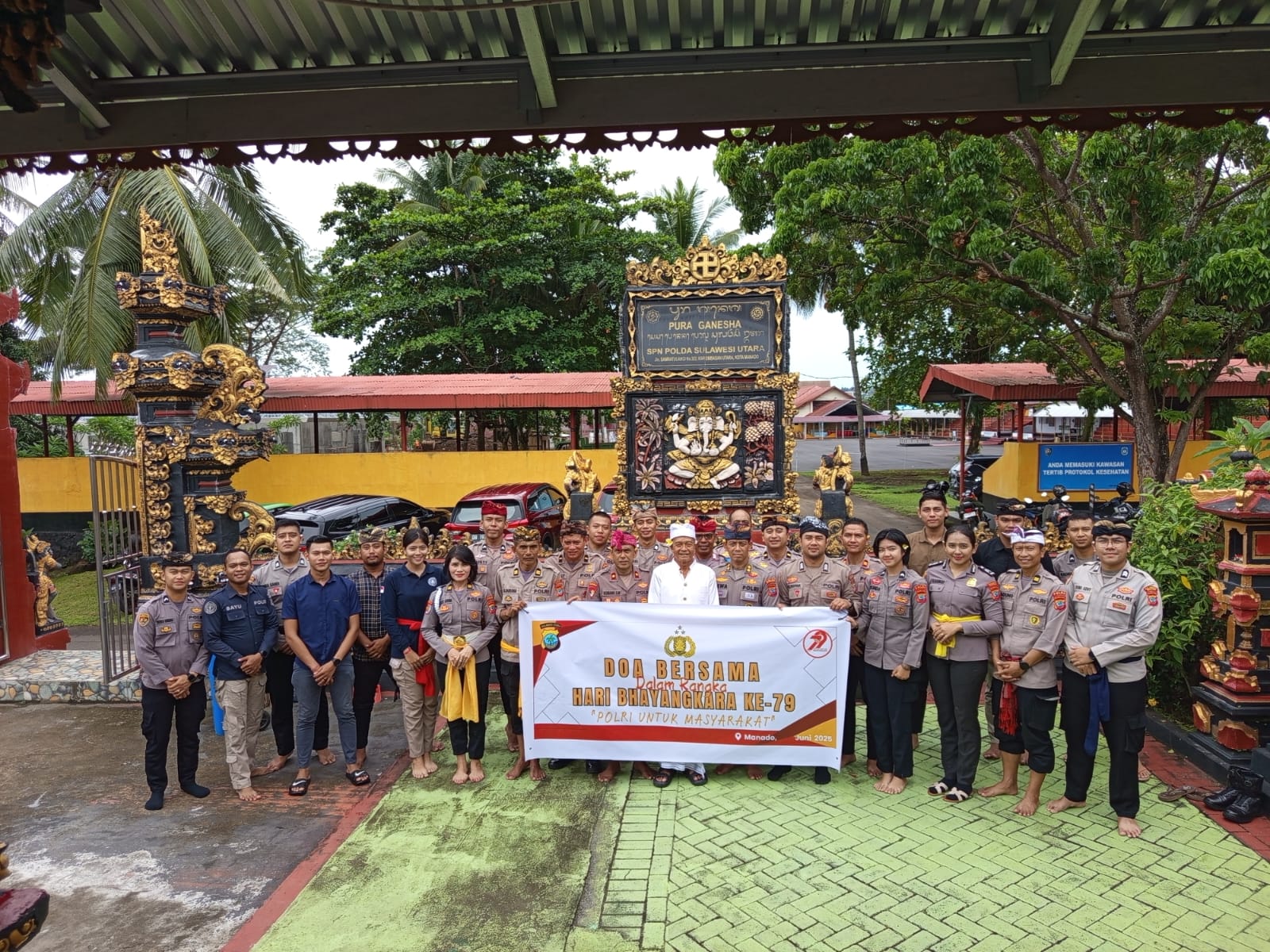 MANADO, Humas Polresta Manado – Dalam rangka menyambut Hari Bhayangkara ke-79, personel Polresta Manado yang beragama Hindu melaksanakan doa bersama di Pura Ganesha, Polda Sulawesi Utara, sebagai bentuk implementasi nilai-nilai spiritual dan penguatan iman, Kamis (19/6/2025).