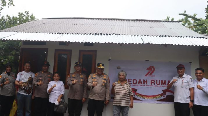 MANADO – Dalam rangka menyambut Hari Ulang Tahun (HUT) Bhayangkara ke-79, Polresta Manado melaksanakan kegiatan sosial berupa program bedah rumah sebagai bentuk kepedulian terhadap warga kurang mampu di wilayah hukumnya, Selasa (2/7/2025).