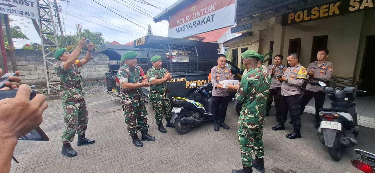Rombongan Koramil 1309-03 WSM dipimpin langsung oleh Danramil Lettu Joury Tumembow, yang disambut hangat oleh Kapolsek Sario AKP Frike R.R. Pangajow, SE bersama jajaran personel Polsek.