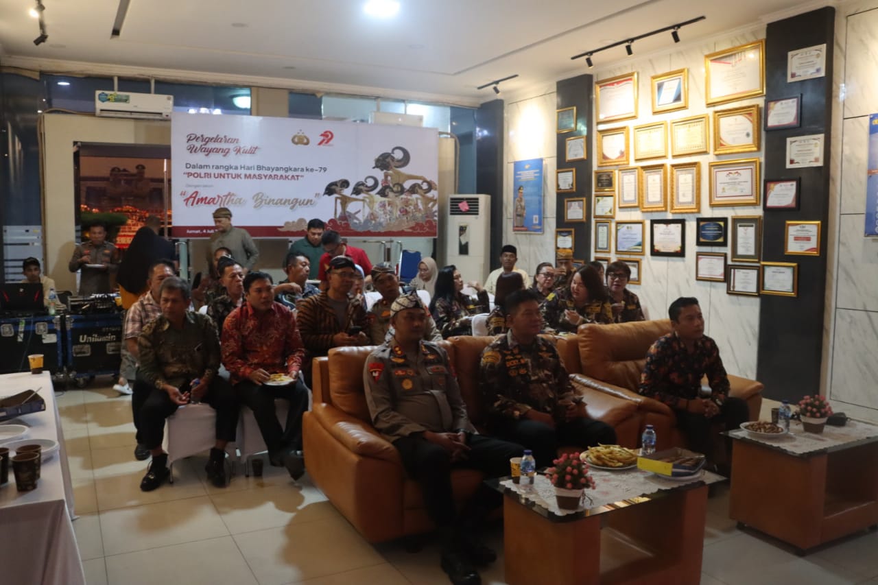 Pertunjukan tersebut juga dihadiri oleh Kapolri Jenderal Polisi Drs. Listyo Sigit Prabowo, M.Si., bersama pejabat utama TNI-Polri, tokoh masyarakat, serta komunitas pecinta Wayang Kulit Indonesia. Tahun ini, pentas wayang mengambil lakon “Amartha Binangun,” sebuah kisah sarat makna tentang persatuan dan pembangunan.