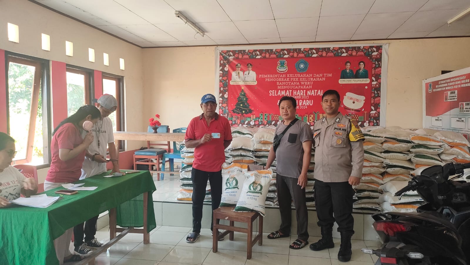 Kegiatan ini mendapat pengawasan langsung dari aparat kelurahan bersama personel Polsek Wanea, guna memastikan proses penyaluran berjalan tertib, aman, dan tepat sasaran. Kehadiran aparat kepolisian juga sebagai bentuk pelayanan prima kepada masyarakat serta mendukung kelancaran distribusi bantuan pemerintah.