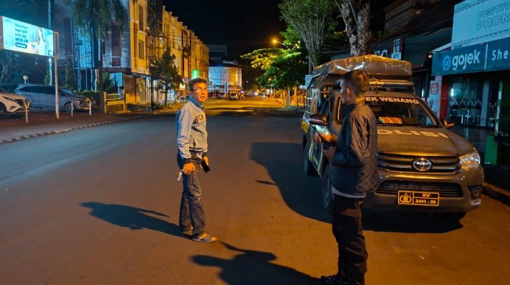 Kegiatan patroli ini dipimpin langsung oleh Ka SPKT bersama sejumlah personel jaga dengan menyasar wilayah pemukiman warga, perkantoran, pertokoan, serta kawasan yang sering dijadikan tempat berkumpul masyarakat pada malam hari.