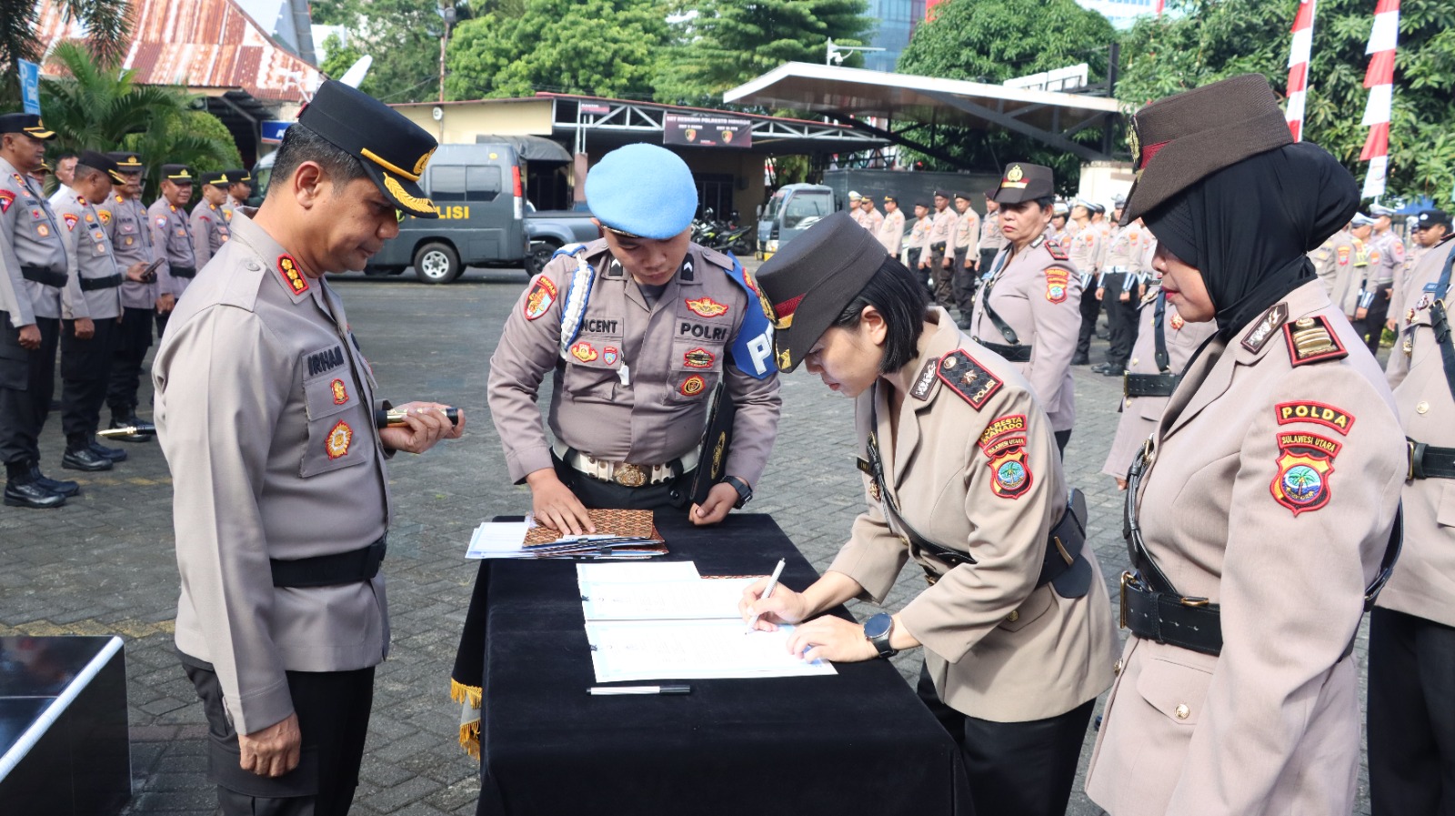 Dalam upacara tersebut, jabatan Kabag SDM diserahterimakan dari Kompol Winifred Cynthia Lenti kepada AKP Marmiasih. Selanjutnya, Kabag Ren dari AKP Marmiasih kepada AKP Diana Lusje Woran.