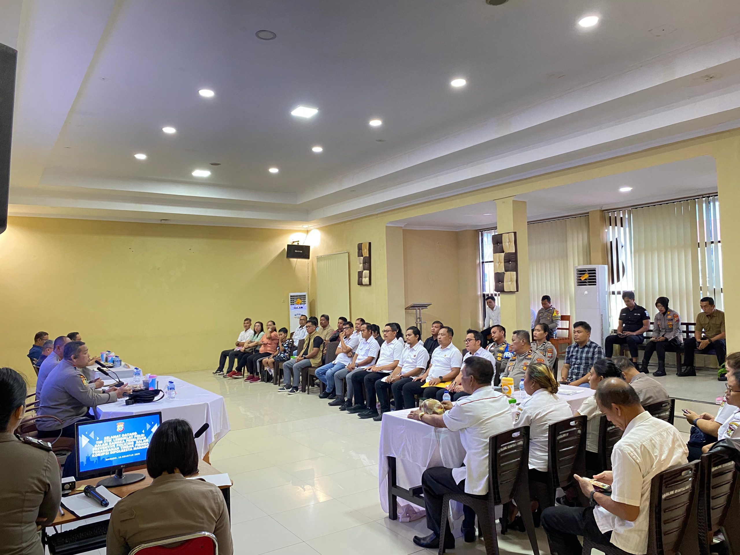 MANADO, Humas Polresta Manado– Polresta Manado menjadi tuan rumah pelaksanaan penelitian yang dilakukan oleh Tim Sekolah Tinggi Ilmu Kepolisian (STIK) Lemdiklat Polri terkait Preventive Policing dalam penanganan tindak pidana korupsi, Rabu (13/8/2025). Kegiatan yang dilaksanakan di Aula Polresta Manado ini diikuti oleh personel Polresta Manado dan Polres Sangihe.