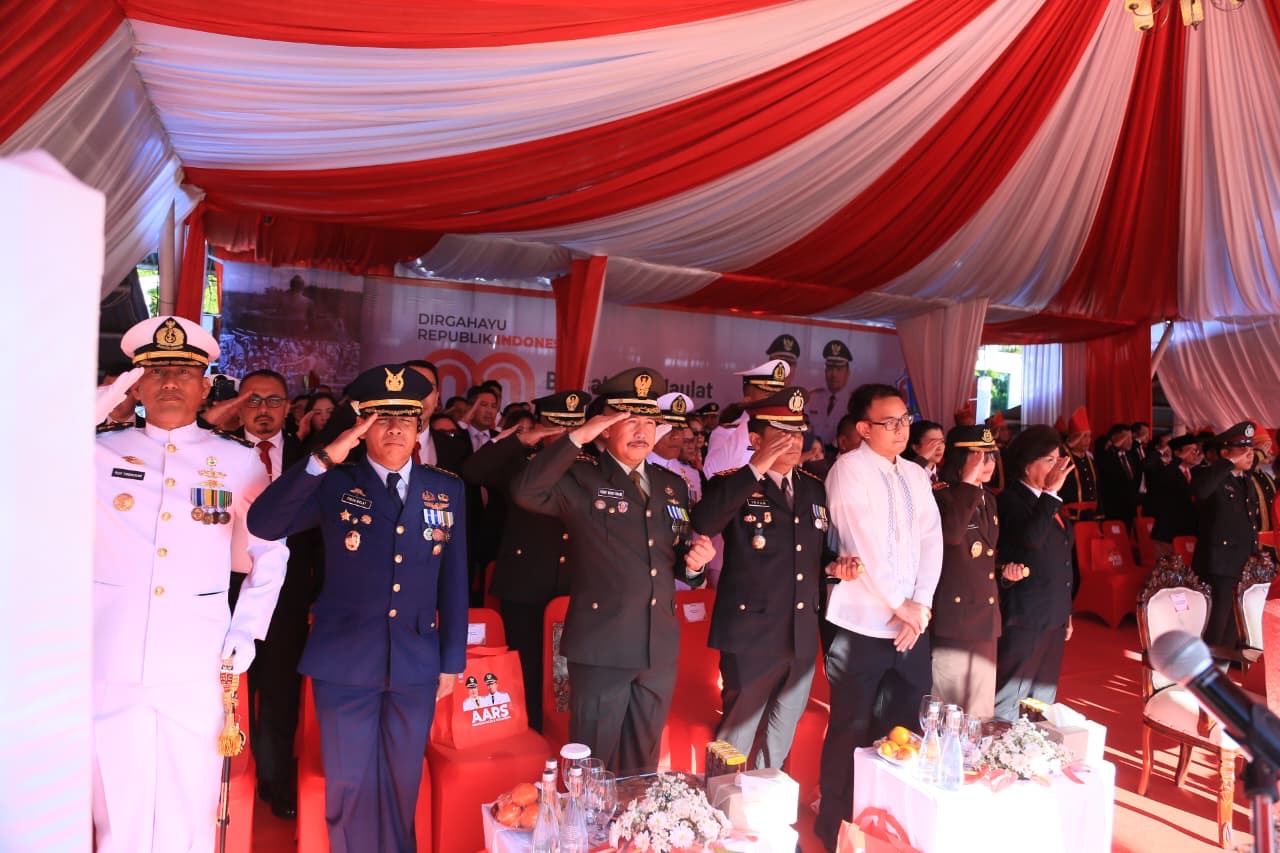 Upacara yang berlangsung khidmat tersebut dipimpin langsung oleh Walikota Manando, serta diikuti Forkopimda, TNI-Polri, ASN, organisasi masyarakat, pelajar, dan berbagai elemen masyarakat.