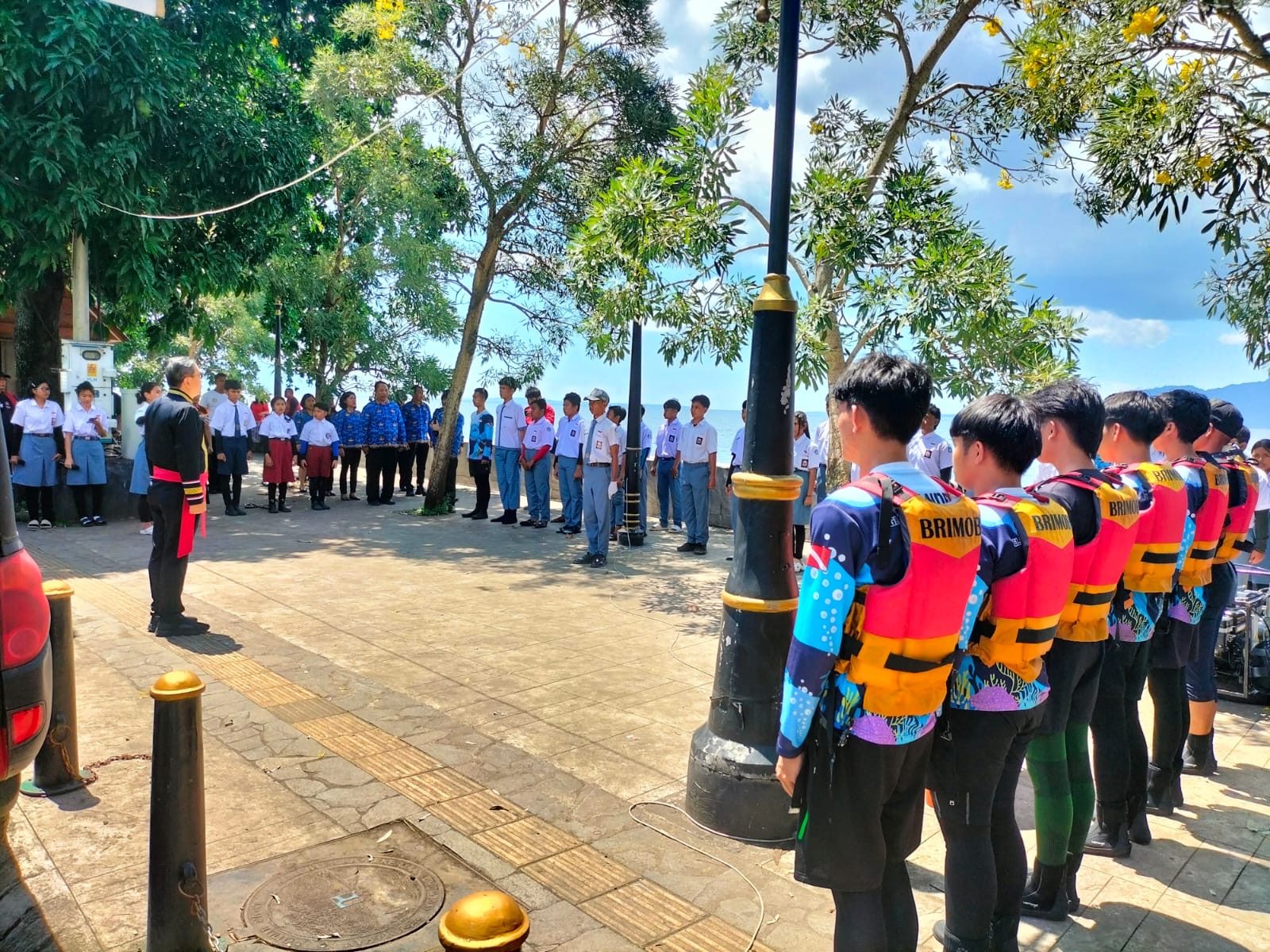 Rangkaian upacara dimulai pukul 12.56 WITA dengan penghormatan umum, laporan pemimpin upacara, amanat pembina upacara, serta pembacaan doa. Prosesi pengibaran bendera berlangsung khidmat di bawah laut dengan pengamanan ketat dari personel Polsek Malalayang.