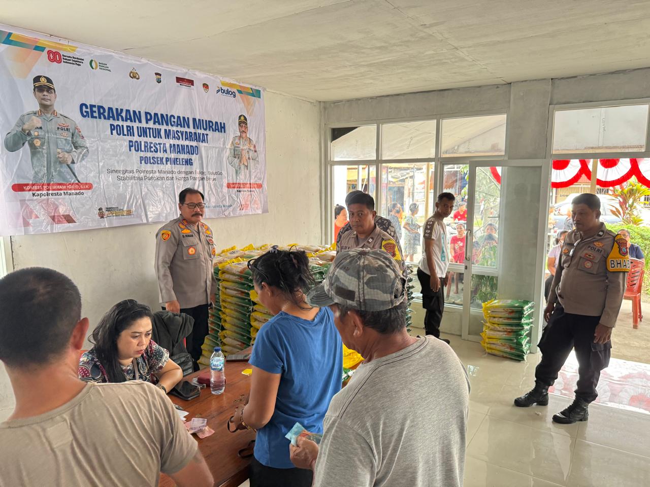 Kapolsek Pineleng, AKP Donald Ch. Rumani, hadir langsung dalam kegiatan tersebut bersama Hukum Tua Desa Tateli Tiga, Steady Gumalang, dan perwakilan Bulog SulutGo, Meigi Putri. Sekitar 200 warga ikut memanfaatkan pasar murah ini dengan membeli beras jenis SPHP 5 kilogram.