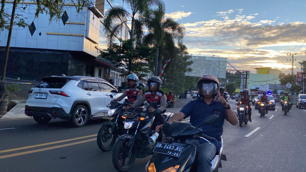 Patroli skala besar ini dilaksanakan dengan menyusuri titik-titik strategis di wilayah Kota Manado yang rawan gangguan keamanan, sekaligus menyampaikan imbauan kamtibmas kepada masyarakat.