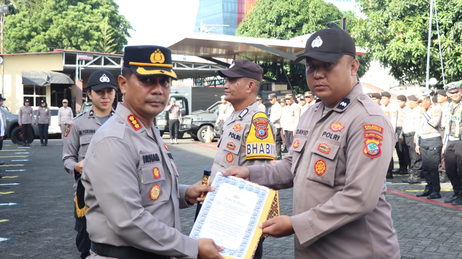 MANADO, Humas Polresta Manado– Kapolresta Manado Kombes Pol Irham Halid, memberikan penghargaan kepada sejumlah personel Polresta Manado yang dinilai berprestasi dalam pelaksanaan tugas, Senin (15/9/2025).