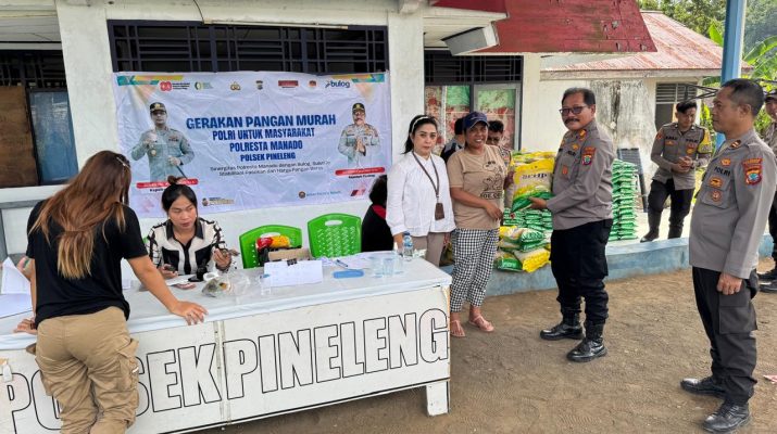MANADO, Humas Polresta Manado– Polsek Pineleng Polresta Manado bersama Bulog SulutGo menggelar kegiatan Gerakan Pangan Murah Polri Untuk Masyarakat yang dilaksanakan di depan Mako Polsek Pineleng (Ex Jembatan Timbang), Desa Pineleng 1 Timur, Kecamatan Pineleng, Kabupaten Minahasa, Senin (15/09/2025) pukul 09.00 WITA.