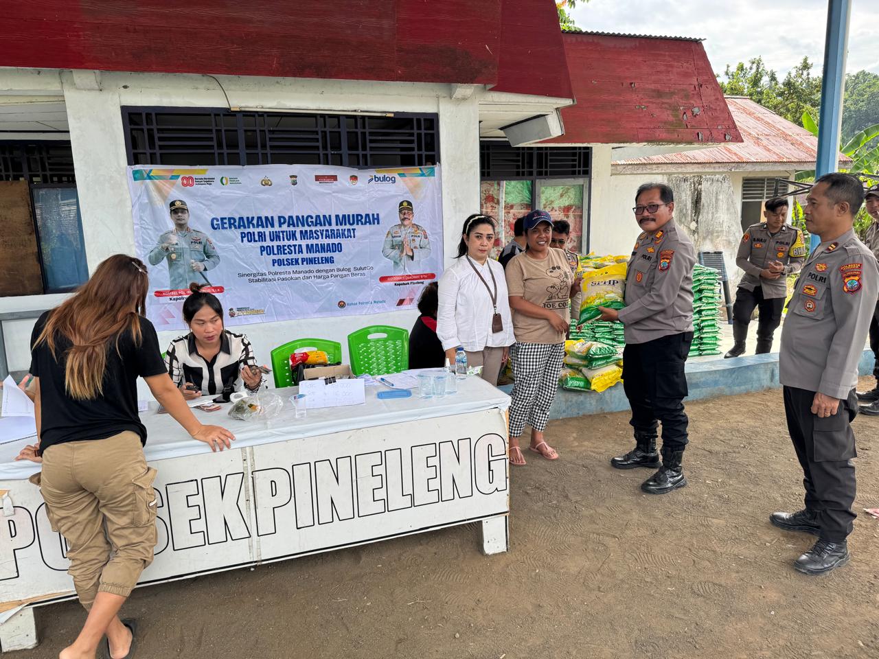 Kegiatan ini dihadiri langsung oleh Kapolsek Pineleng AKP Donald Ch. Rumani, Waka Polsek IPTU Thamrin Lalo, Staf Pengadaan Bulog SulutGo Bpk Amir Gani, personel Polsek Pineleng, serta ratusan warga masyarakat yang antusias memanfaatkan program tersebut. Tercatat kurang lebih 300 warga datang untuk membeli bahan pangan dengan harga terjangkau.