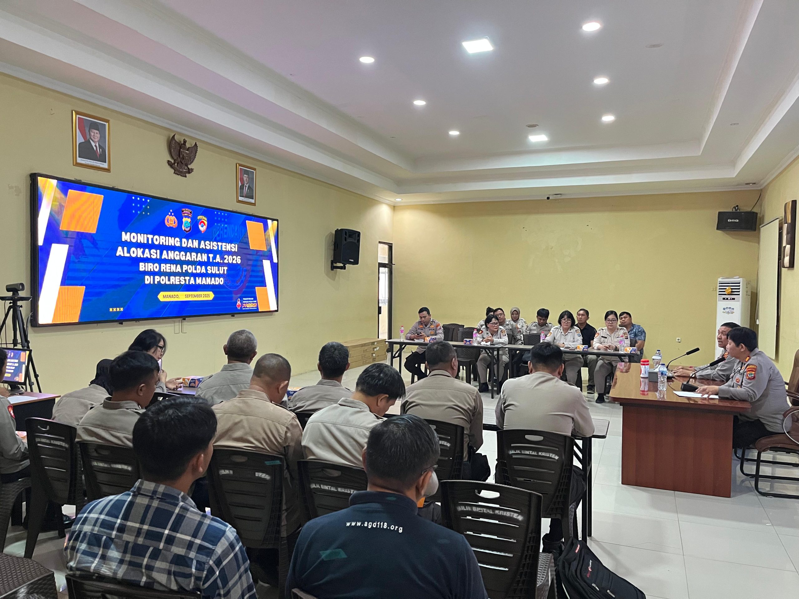 Kegiatan ini dipimpin langsung oleh Tim Biro Rena Polda Sulut dan diikuti oleh para Pejabat Utama serta personel bagian perencanaan Polresta Manado. Monitoring dan asistensi tersebut dilaksanakan sebagai bentuk pengawasan sekaligus pendampingan agar pengelolaan anggaran tahun 2025 dapat berjalan secara efektif, efisien, dan akuntabel.
