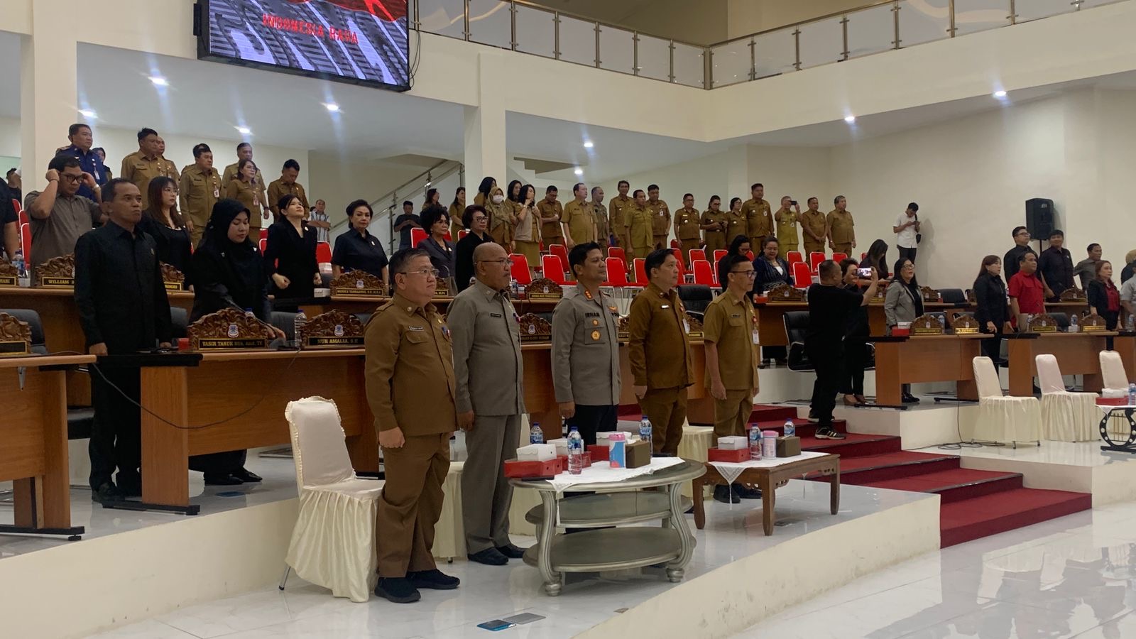 MANADO, Humas Polresta Manado – Kapolresta Manado Kombes Pol Irham Halid, mengikuti Rapat Paripurna DPRD Kota Manado dalam rangka Pembicaraan Tingkat I atas Rancangan Peraturan Daerah (Ranperda) tentang Perubahan Anggaran Pendapatan dan Belanja Daerah (APBD) Kota Manado Tahun 2025, yang bertempat di Kantor DPRD Kota Manado.
