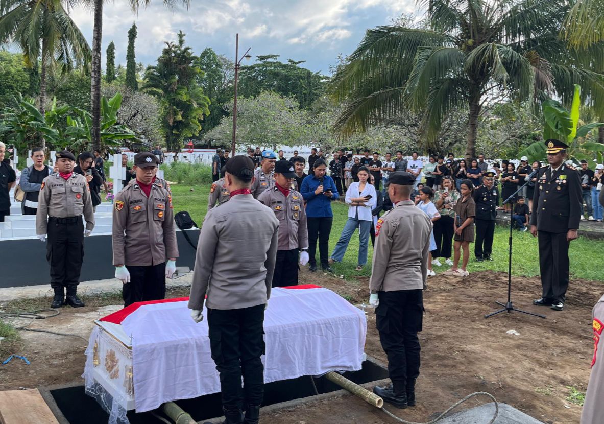 Upacara pemakaman tersebut berlangsung khidmat dengan dihadiri keluarga besar almarhum, personel Polresta Manado, serta masyarakat yang memberikan penghormatan terakhir atas jasa dan pengabdian almarhum selama bertugas di Kepolisian Republik Indonesia.