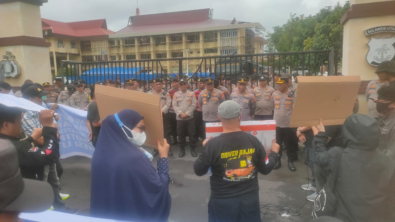 MANADO, Humas Polresta Manado- Personel Polresta Manado bersama Polda Sulawesi Utara (Sulut) melaksanakan pengamanan aksi unjuk rasa (unras) dari karyawan PT Max Auto Indonesia (Bajaj Manado) yang digelar di depan Mapolda Sulut, Senin (6/10/2025).