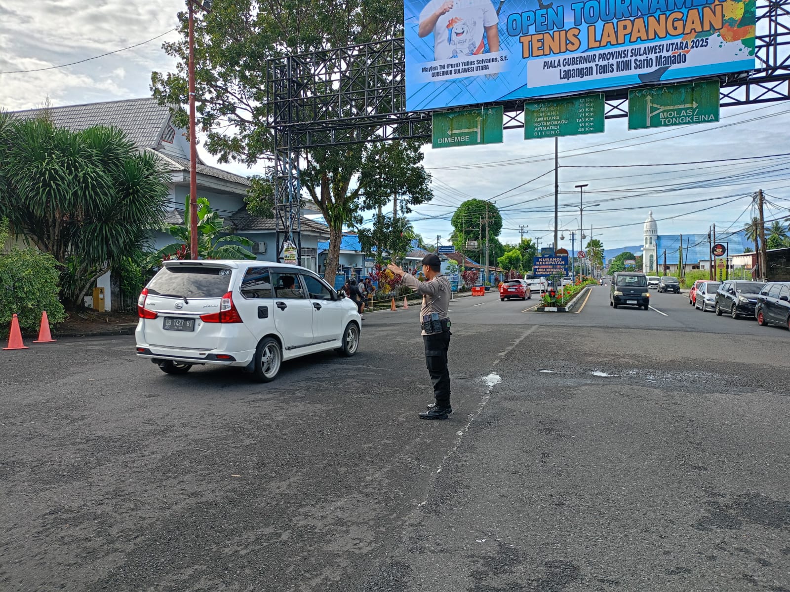 MANADO, Humas Polresta Manado – Personel Polsek Kawasan Bandara Sam Ratulangi Manado melaksanakan kegiatan pengaturan arus lalu lintas di kawasan pintu masuk dan keluar Bandara Sam Ratulangi, Selasa (7/10/2025) pagi. Kegiatan ini dilakukan untuk memastikan kelancaran dan keamanan pengguna jalan, terutama pada jam sibuk saat aktivitas penerbangan meningkat.