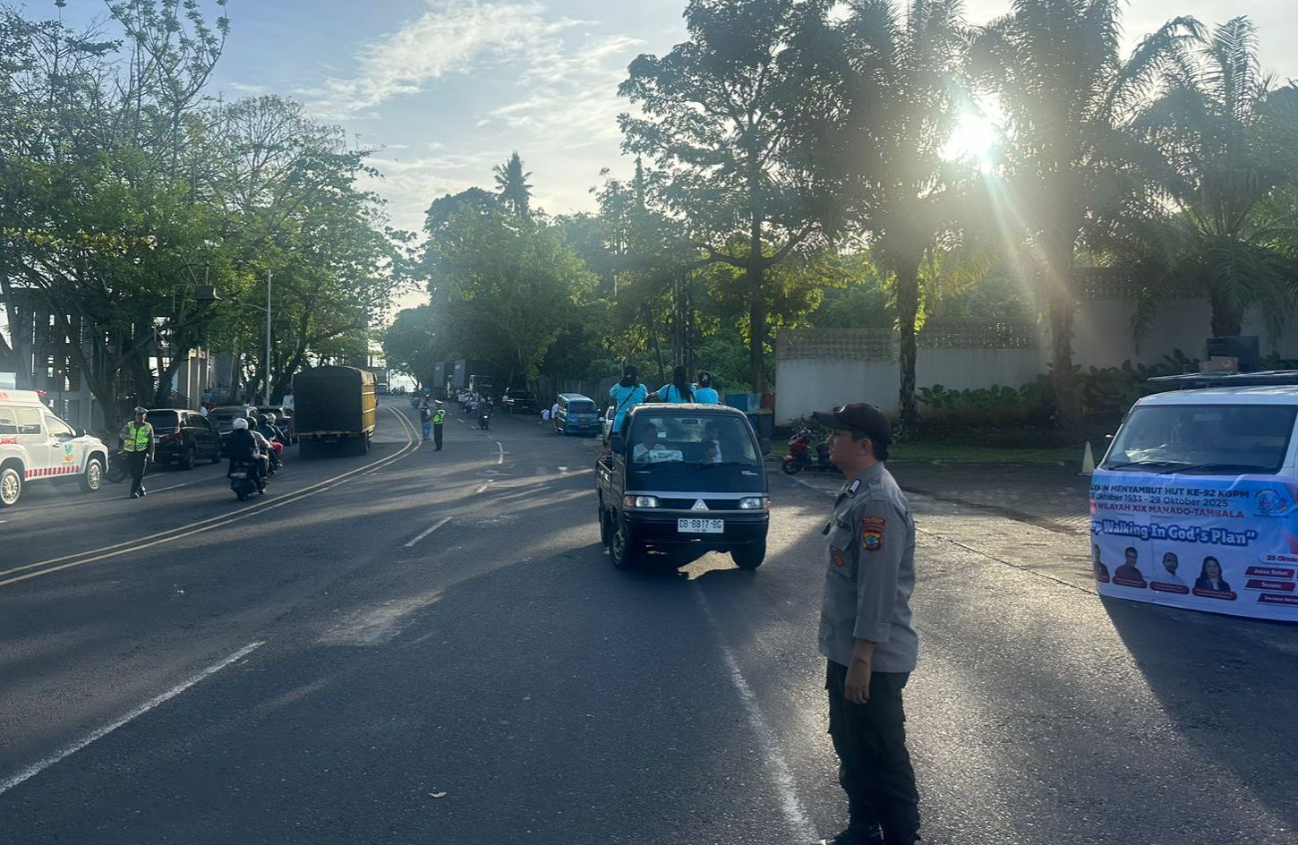 MANADO, Humas Polresta Manado – Polsek Malalayang melakukan pengamanan dan pengawalan kegiatan perayaan menyambut HUT ke-92 KGPM Wilayah XIX Manado–Tambala yang mengusung tema “Keep Walking in God’s Plan”, Sabtu (25/10/2025).