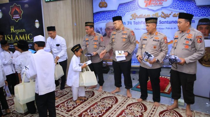 Jakarta. Divisi Humas Polri memberikan tali kasih kepada sejumlah anak yatim dalam rangka Hari Jadi ke-74. Kegiatan ini diselenggarakan usai khataman Al-Qur’an yang melibatkan 74 orang Tahfiz Quran dari sejumlah pesantren beserta personel anggota Divhumas Polri.