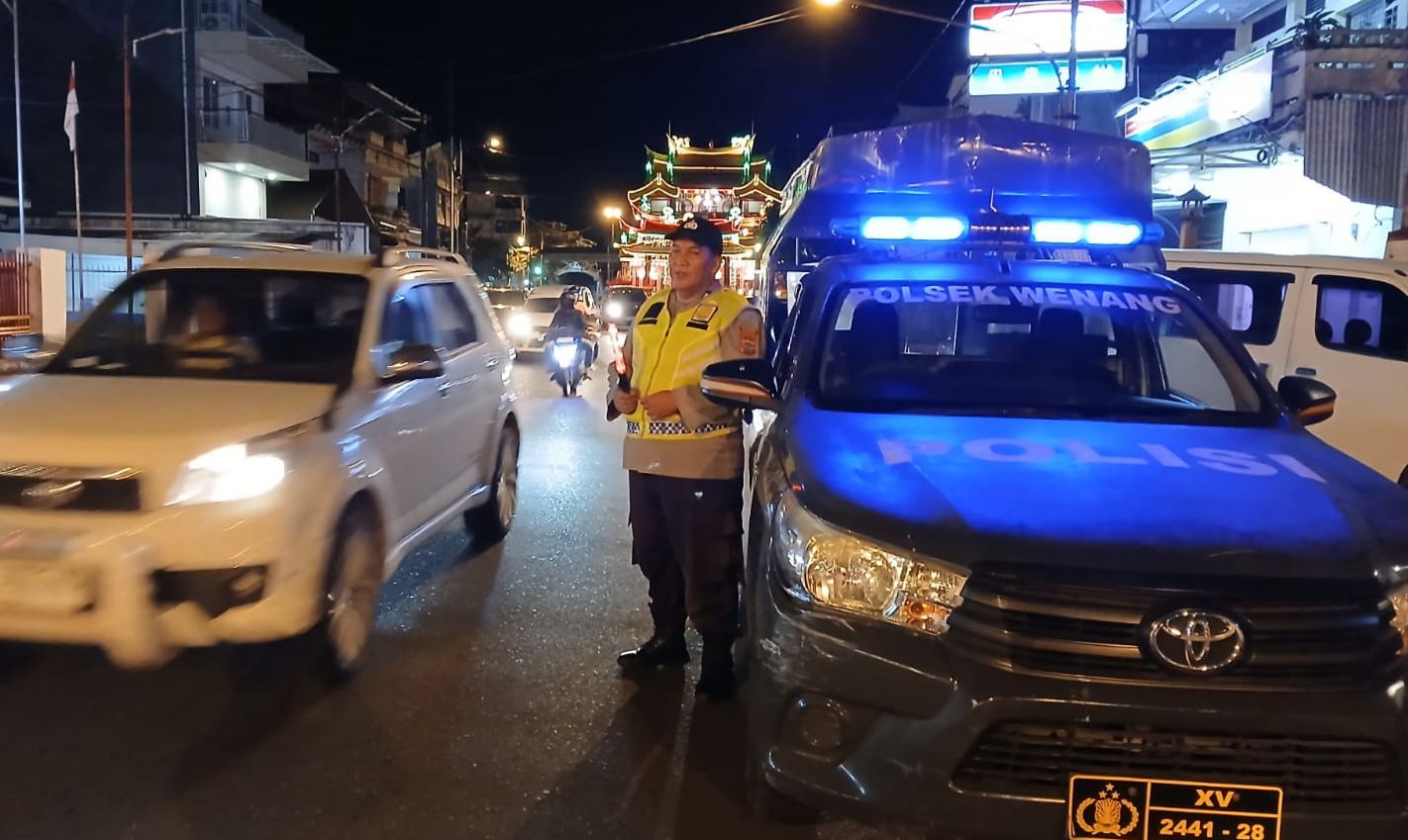 MANADO, Humas Polresta Manado – Polsek Wenang melaksanakan kegiatan Silau Mata atau Siaga Lampu Biru di Keramaian Kota pada Jumat malam (31/10/2025). Kegiatan ini dilakukan sebagai upaya menciptakan rasa aman dan nyaman bagi masyarakat serta pengguna jalan di wilayah pusat Kota Manado.