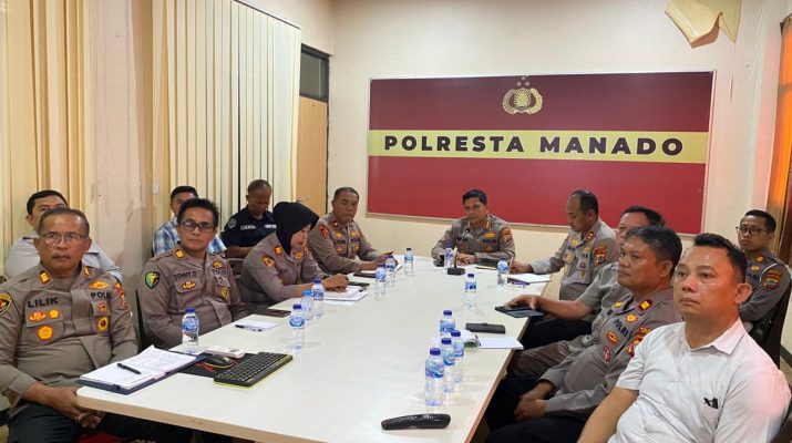 MANADO, Humas Polresta Manado– Kapolresta Manado Kombes Pol Irham Halid, didampingi Wakapolresta Manado AKBP Eko Sisbiantoro, bersama para Pejabat Utama (PJU) Polresta Manado, mengikuti kegiatan video conference (vicon) dalam rangka kesiapan Apel Tanggap Darurat Bencana yang dipimpin langsung oleh Wakapolri, Selasa (4/11/2025).