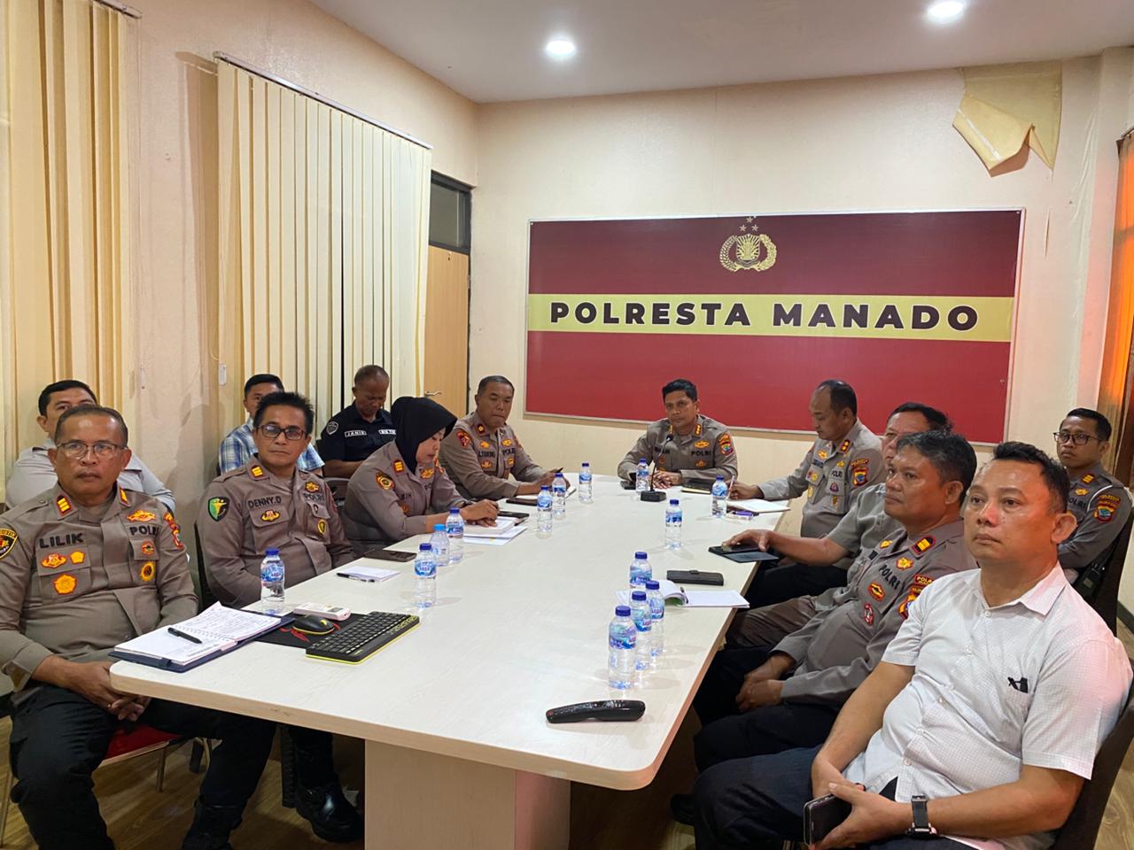 MANADO, Humas Polresta Manado– Kapolresta Manado Kombes Pol Irham Halid, didampingi Wakapolresta Manado AKBP Eko Sisbiantoro, bersama para Pejabat Utama (PJU) Polresta Manado, mengikuti kegiatan video conference (vicon) dalam rangka kesiapan Apel Tanggap Darurat Bencana yang dipimpin langsung oleh Wakapolri, Selasa (4/11/2025).