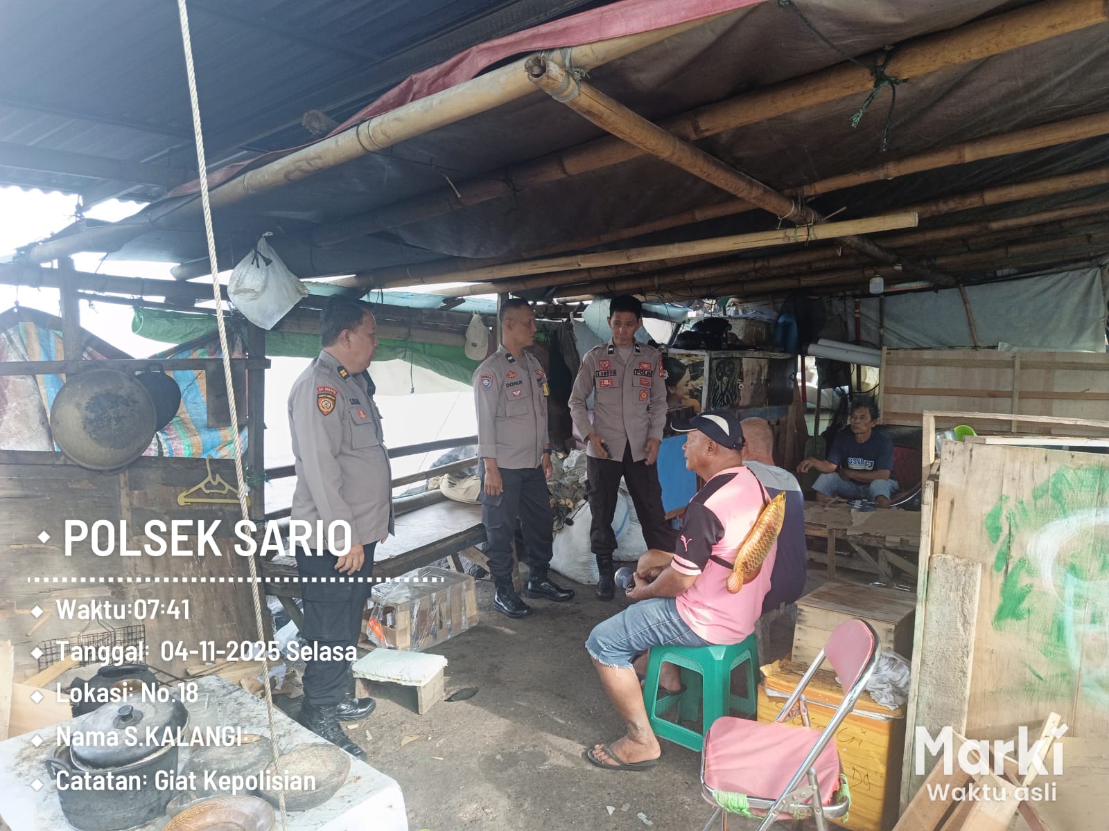 MANADO, Humas Polresta Manado – Personel Polsek Sario Polresta Manado melaksanakan kegiatan sambang dan pemantauan di lokasi parkiran perahu milik warga nelayan yang berada di seputaran Kawasan Taman Berkat Kelurahan Sario Tumpaan Lingkungan IV serta di Kawasan Megamas, Kelurahan Titiwungen Selatan, Kecamatan Sario, Rabu (4/11/2025).