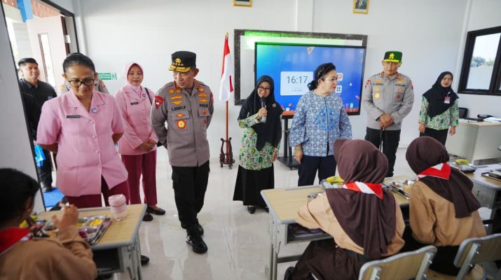 Dalam kunjungannya, Sigit melakukan peninjauan aktivitas belajar di ruang kelas SMP Kemala Bhayangkari serta menyaksikan para murid menerima program MBG.