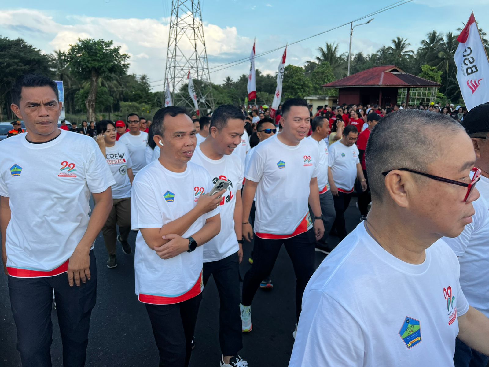 MANADO, Humas Polresta Manado – Suasana penuh semangat dan kebersamaan mewarnai kegiatan Jalan Sehat dalam rangka pembukaan rangkaian perayaan Hari Ulang Tahun (HUT) ke-22 Kabupaten Minahasa Utara, Jumat (7/11/2025) pagi. Kegiatan ini dimulai pukul 06.00 WITA dengan start di JG Center dan finish di Lapangan Kantor Bupati Minahasa Utara.