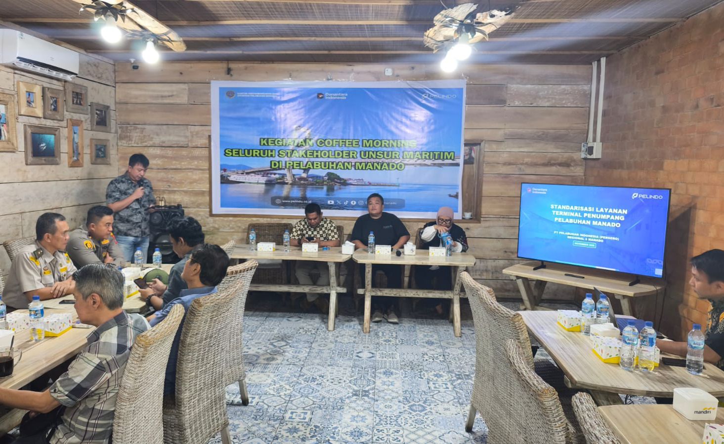 MANADO, Humas Polresta Manado – Kapolsek Kawasan Pelabuhan Manado, IPDA Juan A.V. Rumbajan, menghadiri kegiatan Coffee Morning Insan Maritim Wilayah Pelabuhan Manado yang digelar Kantor Kesyahbandaran dan Otoritas Pelabuhan (KSOP) Kelas III Manado di RM Tuna House, Bitung Karangria, Kecamatan Tuminting, Jumat (7/11/2025).