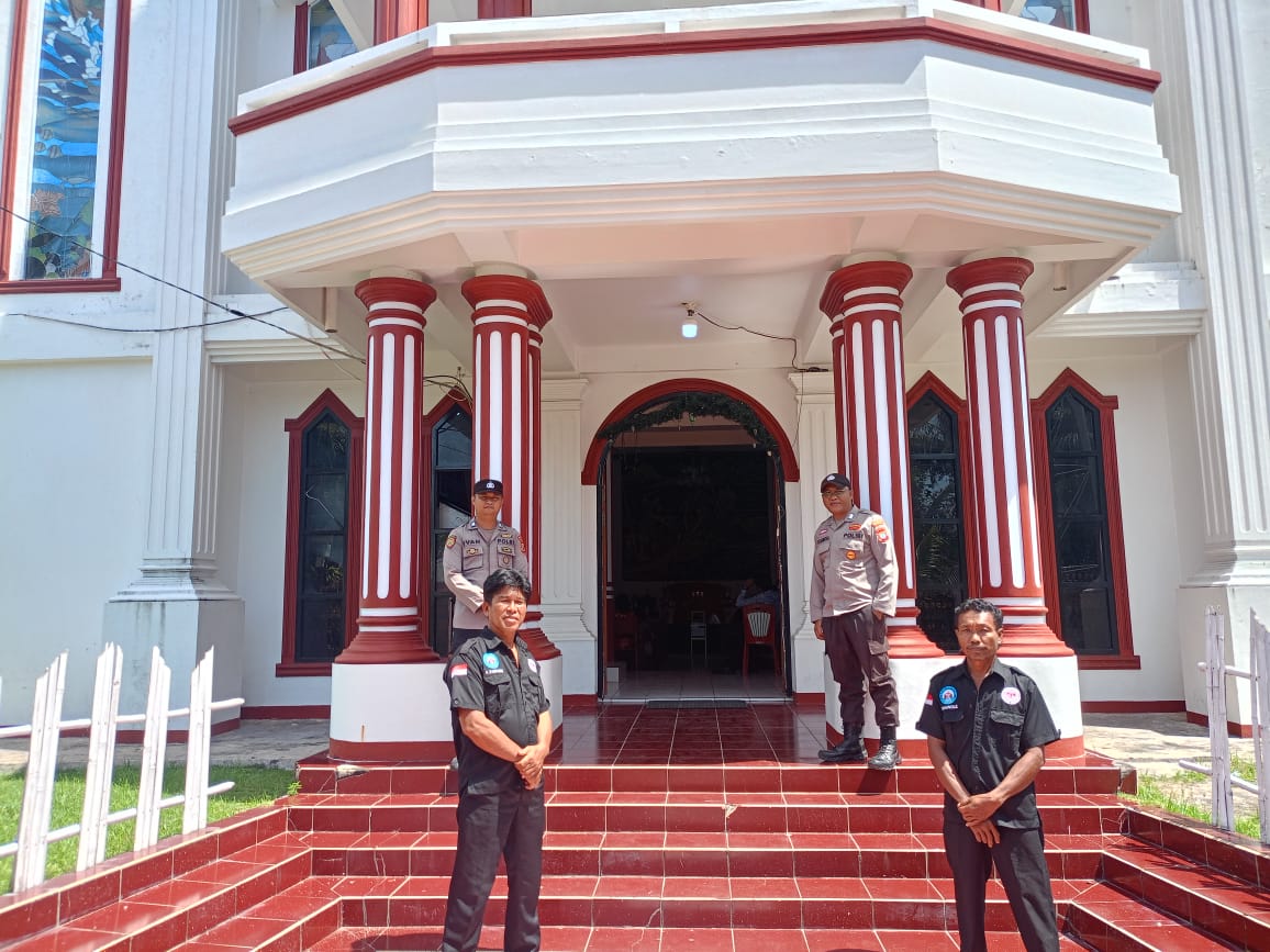 Selain menjaga keamanan, petugas juga berinteraksi dengan masyarakat dan pengurus gereja untuk mempererat hubungan kemitraan serta mendengarkan aspirasi terkait keamanan lingkungan.