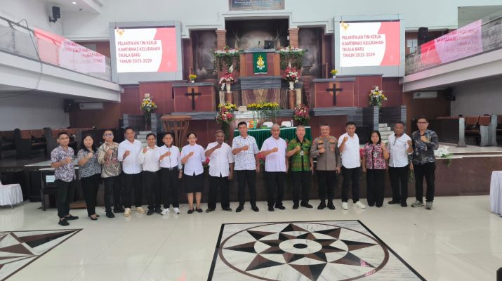 MANADO, Humas Polresta Manado – Polsek Tikala melakukan pengamanan kegiatan Pelantikan Tim Kerja Kamtibmas Kelurahan Tikala Baru periode 2025–2029 yang digelar di Gereja Bukit Moria Tikala Baru, Kamis (13/11/2025) siang.