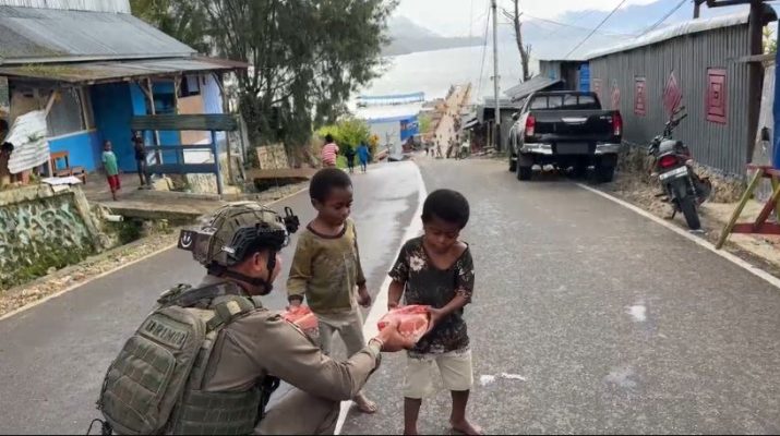 Enarotali, Paniai Timur — Dalam rangka memperingati Hari Ulang Tahun Korps Brimob Polri ke-80, Satgas Ops Damai Cartenz Sektor Paniai melaksanakan bakti sosial dengan membagikan paket makanan kepada warga di Jl. Aikai, Enarotali, Kabupaten Paniai Timur, pada Jumat (14/11/2025). Kegiatan dipimpin langsung oleh Ipda Nofri Surya Rossa selaku Dansektor Satgas Tindak Sektor Paniai dan melibatkan personel Brimob serta anggota Satgas yang bertugas di wilayah tersebut.