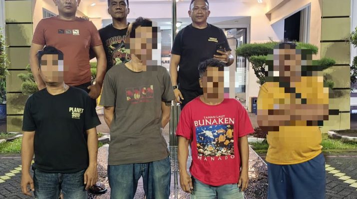 MANADO, Humas Polresta Manado – Tim Delta Resmob Polresta Manado berhasil mengamankan empat pelaku kasus kekerasan secara bersama-sama sebagaimana dimaksud dalam Pasal 170 KUHP. Para pelaku ditangkap pada Minggu (23/11/2025) sekitar pukul 22.05 Wita setelah dilaporkan melakukan penganiayaan menggunakan senjata tajam di Kelurahan Bailang, Kecamatan Tuminting, Kota Manado.