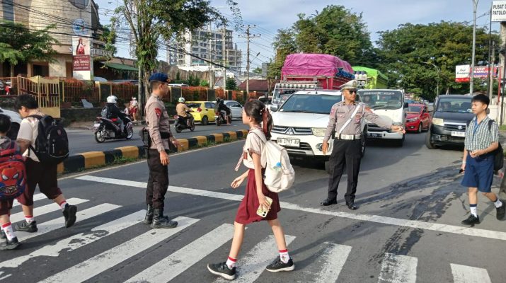 Personel melakukan pengaturan lalu lintas pagi hari untuk mendukung kelancaran masyarakat yang beraktivitas, termasuk arus menuju sekolah, perkantoran, dan fasilitas umum. Selain itu, petugas memberikan edukasi keselamatan berkendara serta memastikan situasi Kamseltibcarlantas tetap kondusif.