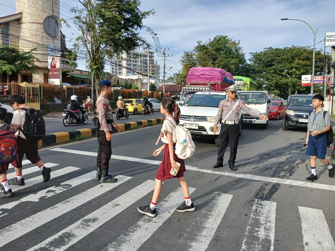 Personel melakukan pengaturan lalu lintas pagi hari untuk mendukung kelancaran masyarakat yang beraktivitas, termasuk arus menuju sekolah, perkantoran, dan fasilitas umum. Selain itu, petugas memberikan edukasi keselamatan berkendara serta memastikan situasi Kamseltibcarlantas tetap kondusif.