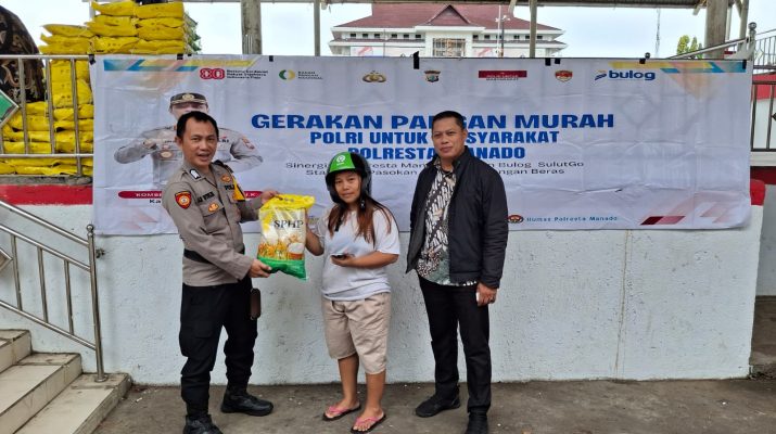 MANADO, Humas Polresta Manado – Polsek Wenang Polresta Manado bersama Bulog SulutGo menggelar Gerakan Pangan Murah Polri di Lapangan Sparta Tikala, Kamis (4/12/2025). Kegiatan yang dimulai pukul 09.00 Wita ini disambut antusias warga yang datang membeli beras murah.