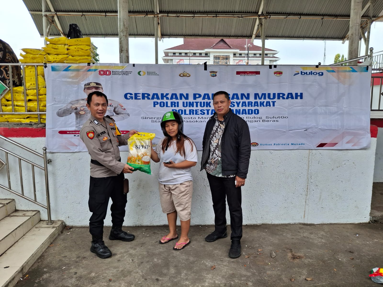 MANADO, Humas Polresta Manado – Polsek Wenang Polresta Manado bersama Bulog SulutGo menggelar Gerakan Pangan Murah Polri di Lapangan Sparta Tikala, Kamis (4/12/2025). Kegiatan yang dimulai pukul 09.00 Wita ini disambut antusias warga yang datang membeli beras murah.