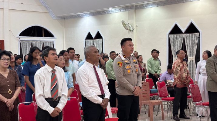 Ipda Urielson Novri Sanger terlihat mengikuti seluruh rangkaian ibadah bersama jemaat. Ia juga menyampaikan pesan kamtibmas singkat, mengajak masyarakat menjaga kerukunan, keamanan, dan ketertiban selama masa perayaan Natal.