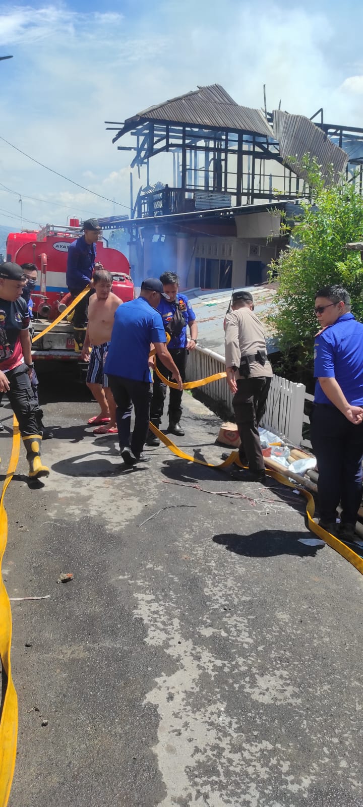 Mendapat laporan dari masyarakat, pada pukul 10.51 Wita personel patroli Polsek Wenang yang dipimpin Ka SPKT Aiptu Stive Rumengan langsung mendatangi lokasi kejadian untuk melakukan pengamanan TKP, membantu evakuasi warga, serta berkoordinasi dengan petugas pemadam kebakaran.