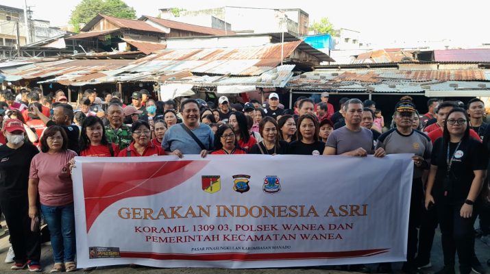 MANADO, Humas Polresta Manado – Personel Polsek Wanea bersama Koramil 1309-03 dan Pemerintah Kecamatan Wanea melaksanakan kegiatan Gerakan Indonesia Asri di Pasar Pinasungkulan, Kelurahan