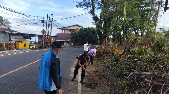 Polsek Pineleng dan Pemerintah Kecamatan Karya Bakti Bersihkan Jalan Manado–Tomohon, Kapolsek: Wujud Sinergi Jaga Keselamatan Pengguna Jalan