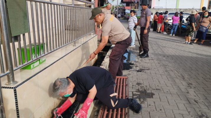 MANADO, Humas Polresta Manado- Pemerintah Kecamatan Tikala bersama jajaran Polsek Tikala menggelar kegiatan Jumat Bersih di Masjid At Thohirin, Kelurahan Banjer Lingkungan VII, Kecamatan