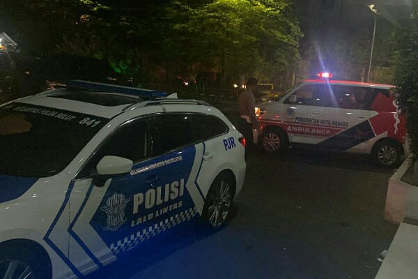 PJR Ditlantas Polda Sulut Bantu Evakuasi Korban Musibah Kebakaran KM Barcelona V A