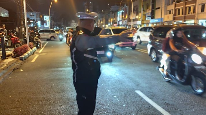 Ciptakan Kelancaran Lalu Lintas, Satlantas Polresta Manado Lakukan Pengaturan di Malam Hari